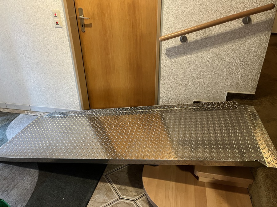 Alu-Leichtbau-Rampe für Rollstühle mit Aufhängung, Gewicht = 15Kg