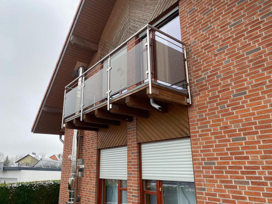 Edelstahl-Balkongeländer mit Glasfüllung in ESG-Parsol Bronze (getont) und Radienkante, Stärke = 10mm