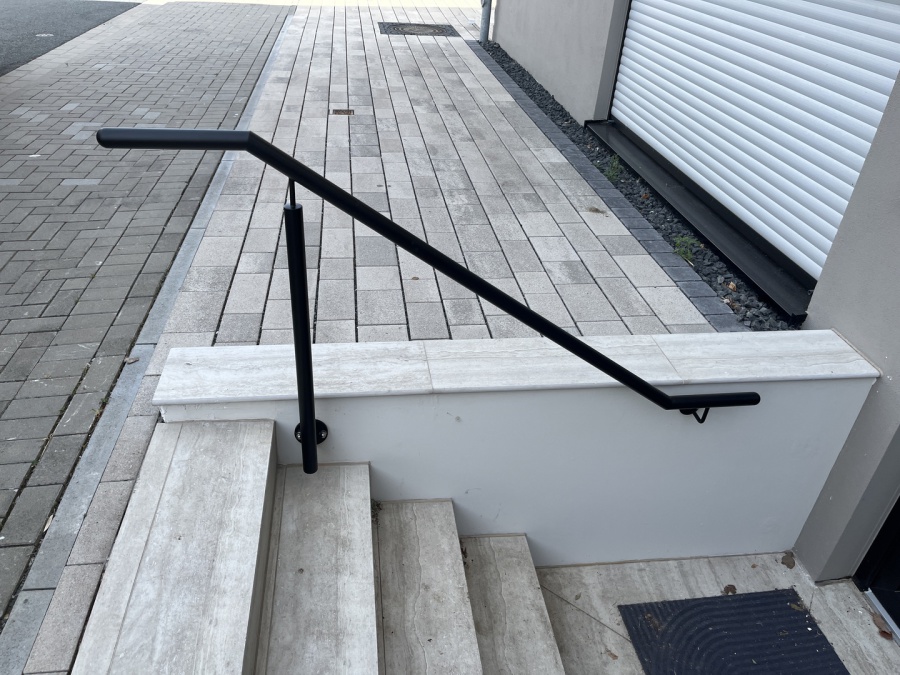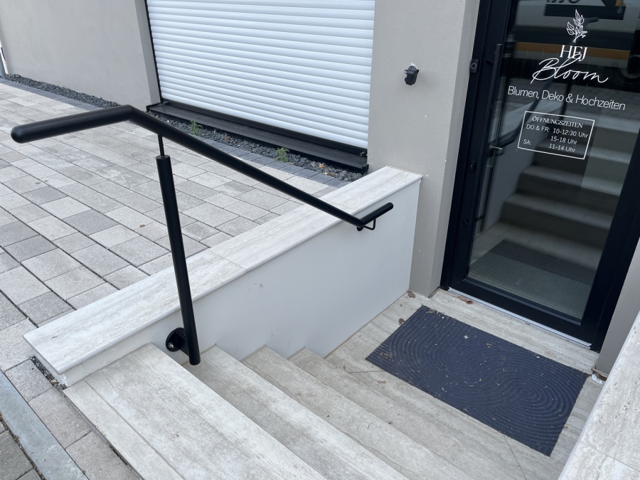 Stahl-Handlauf aus Rechteckrohr 50x30 dem Geländeverlauf angepasst