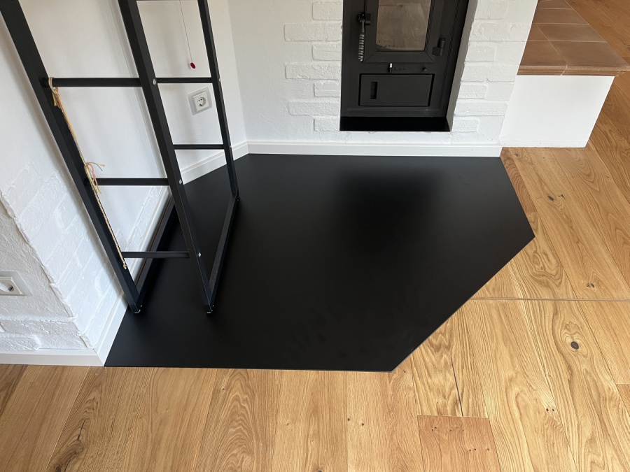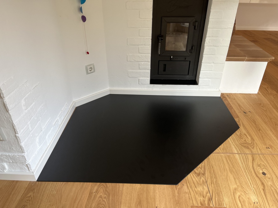 Stahl-Kaminplatte 4mm Stark, pulverbeschichtet in RAL 9005 Feinstruktur
