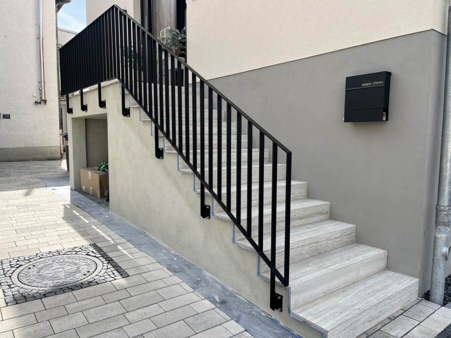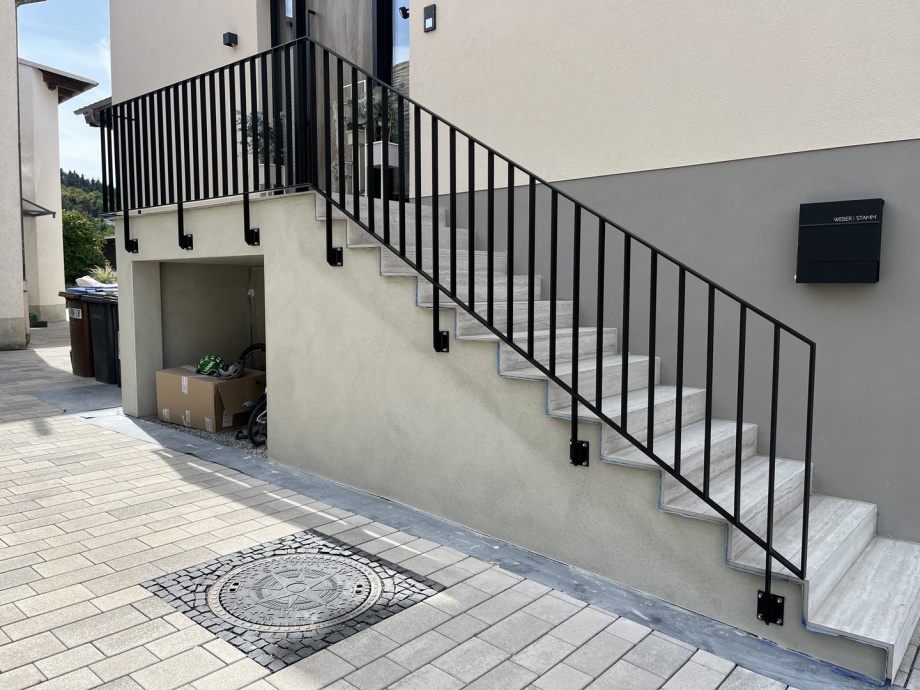 Stahl Treppengeländer im Duplex System zuvor feuerverzinkt und anschließend pulverbeschichtet nach RAL oder DB-Farben
