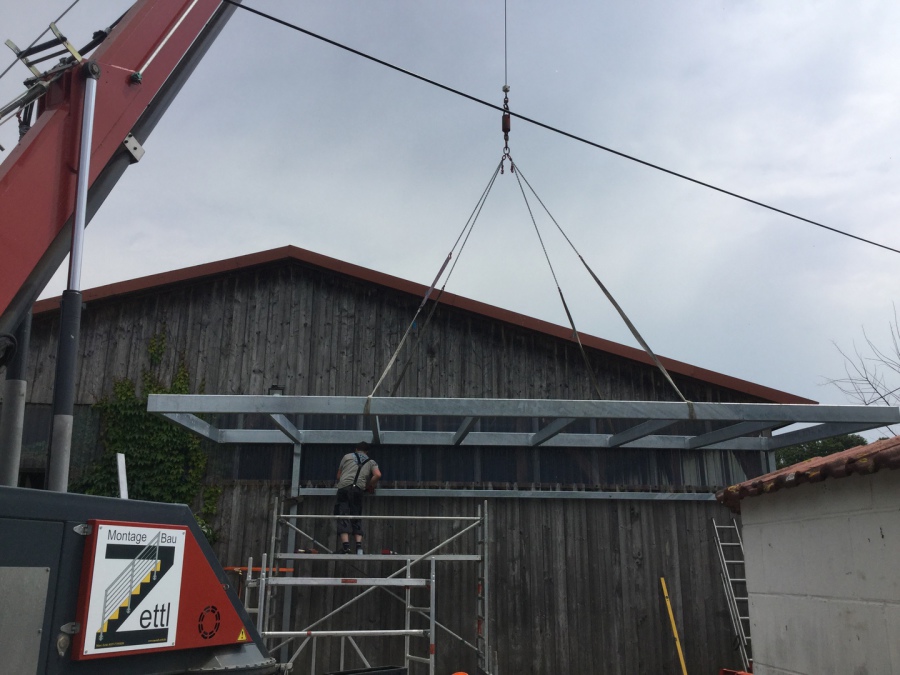 Einseitig einschwenkbare Abstützung für geringen Platzbedarf